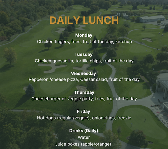- Different lunch options each day